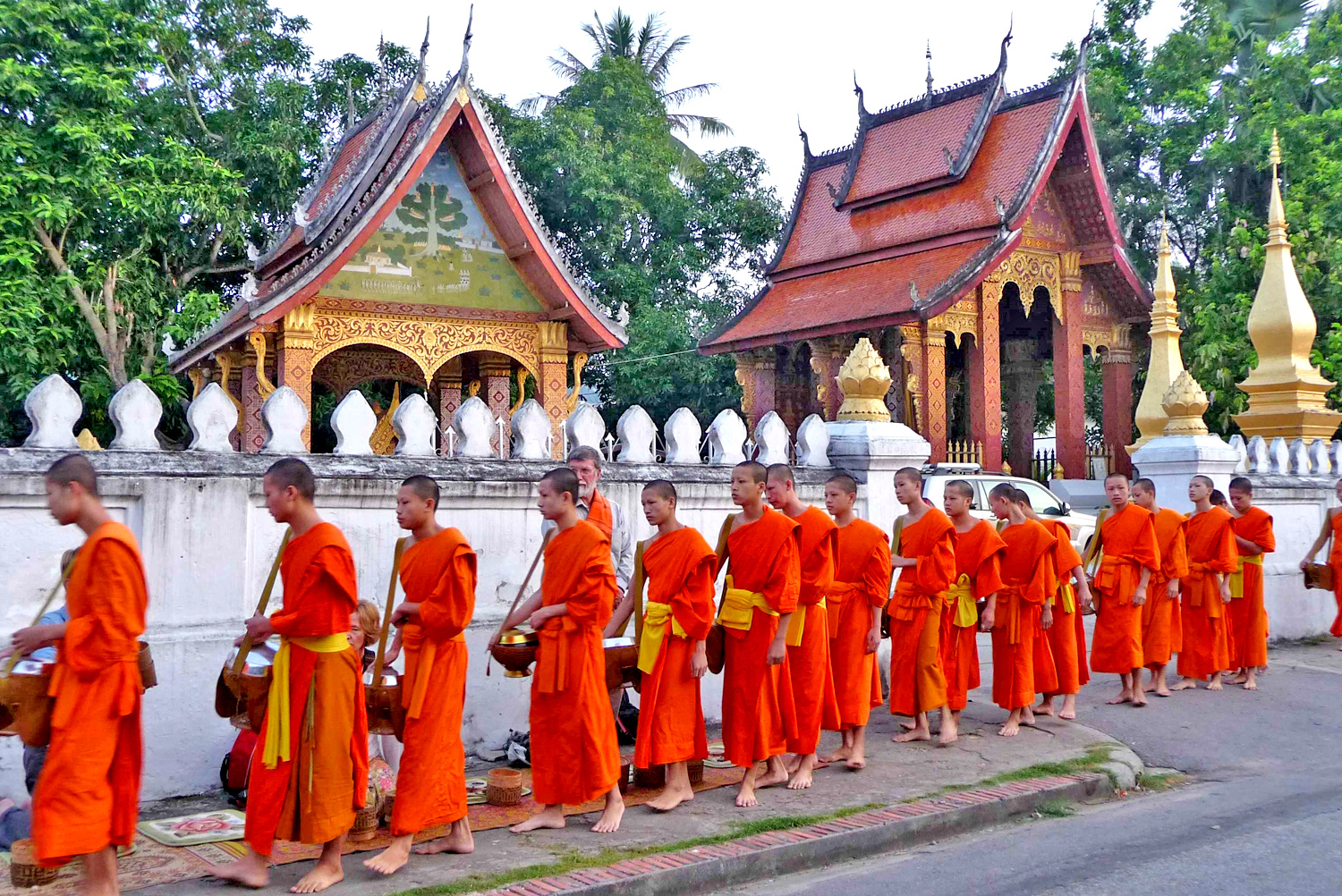 Colazione, incontro con la guida italiana. Ci imbarchiamo per tornare a Luang Prabang, durante il trasferimento facciamo sosta al villaggio locale Ban Muangkeo famoso per la produzione del vino di riso Lao Lao, bevanda tradizionale laotiana. Arrivati a Luang Prabang inziamo le visite culturali con il Museo Nazionale (un tempo Palazzo Reale). Pranzo libero (non incluso). Nel pomeriggio proseguiamo le visite con i templi: Wat Sene “Tempio dei 100.000 tesori” realizzato nel 1718; Wat Xieng Thong “Monastero della Città d’Oro” fondato nel 1560; Wat Visoun edificato nel 1513; Wat Aham “Monastero del Cuore in Fiore“ costruito ad inzio XIX secolo; Wat Mai il “Nuovo Monastero” realizzato nel tardo XVIII secolo. In prima serata ci rechiamo presso un’abitazione locale per assistere al cerimoniale del "Baci": cerimonia spirituale animista che ha origini risalenti al periodo precedente all’introduzione del Buddismo in Laos. Secondo il credo animista ancora oggi molto praticato ogni persona possiede 32 spiriti che costituiscono l’essenza dell’individuo. Il rituale ha la funzione di richiamare gli spiriti e sincronizzarli sui 32 organi del corpo umano. Si dice che contribuisca anche a bilanciare l’armonia dell’individuo all'interno della comunità. Viene praticata come buon auspicio in diverse occasioni: nascita, matrimonio, partenze, ritorni, inizio anno, etc. In occasione della cerimonia vengono preparati fiori e dolci e recitate frasi mistiche animiste e buddiste, al termine i partecipanti ricevono la benedizione individualmente. Ritorno in hotel a Luang Prabang per il pernottamento.