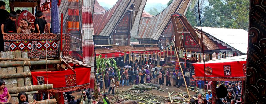 Ai funerali partecipano tantissimi invitati e possono durare per giorni, più il deceduto era importante all’interno della comunità del villaggio e più animali verranno sacrificati in suo onore, soprattutto bufali.