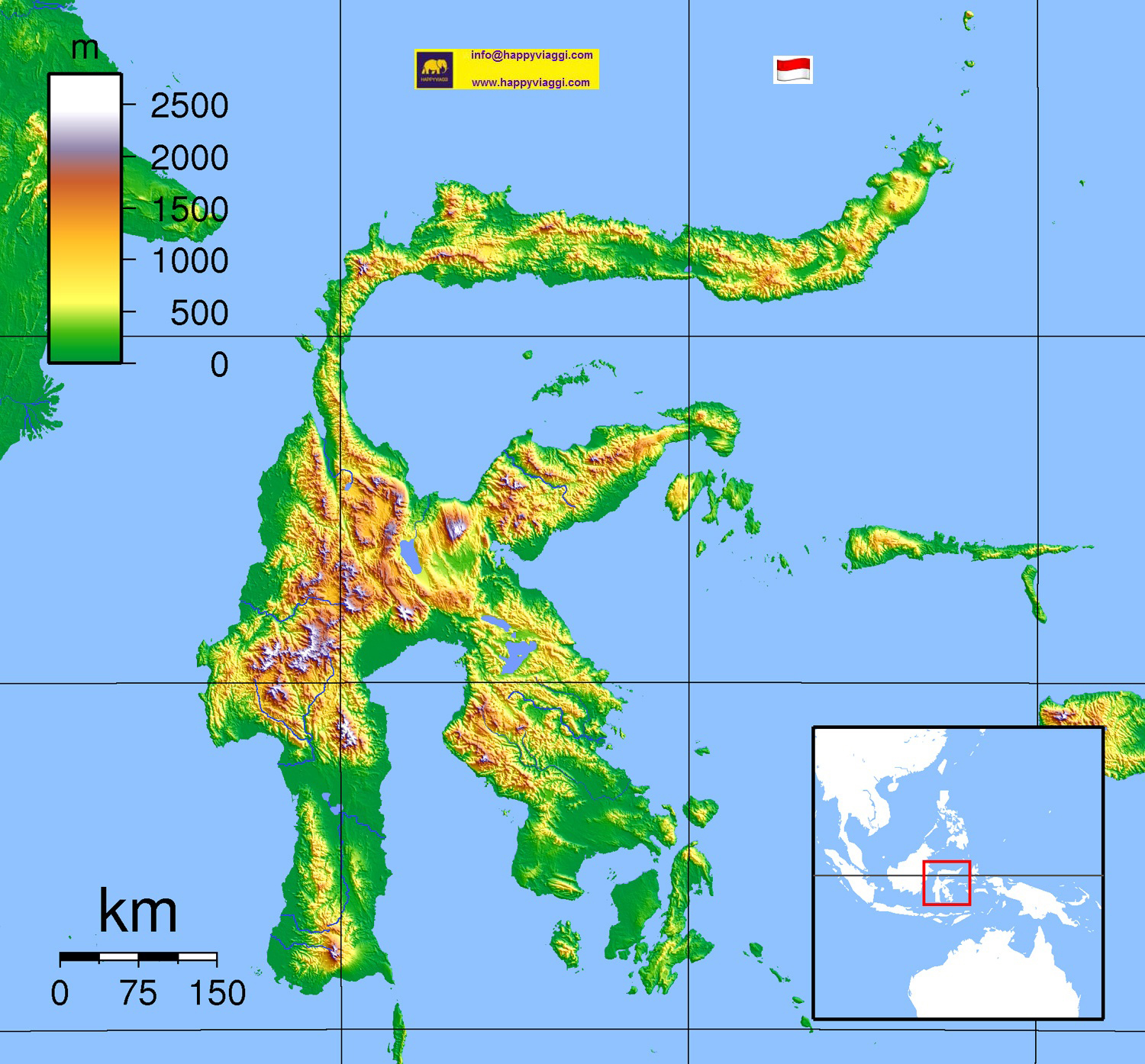 Carta Geografica Isola di Sulawesi