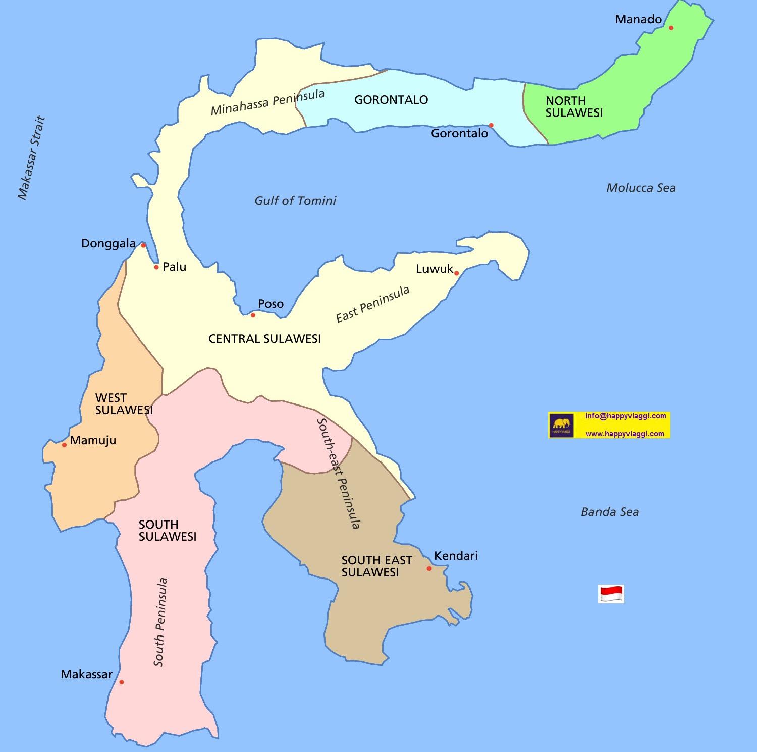Sulawesi Nord, Gorontalo, Sulawesi Centrale, Sulawesi Ovest, Sulawesi Sud, Sulawesi Sud Est