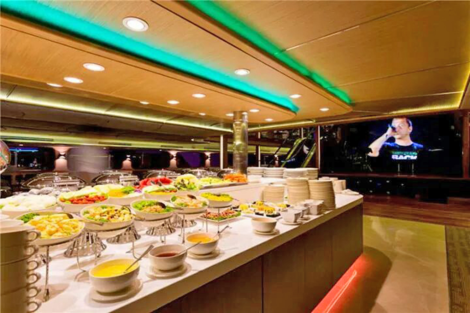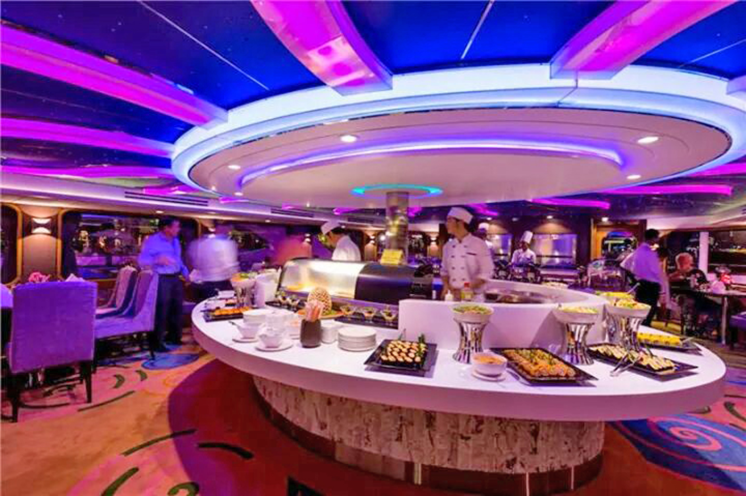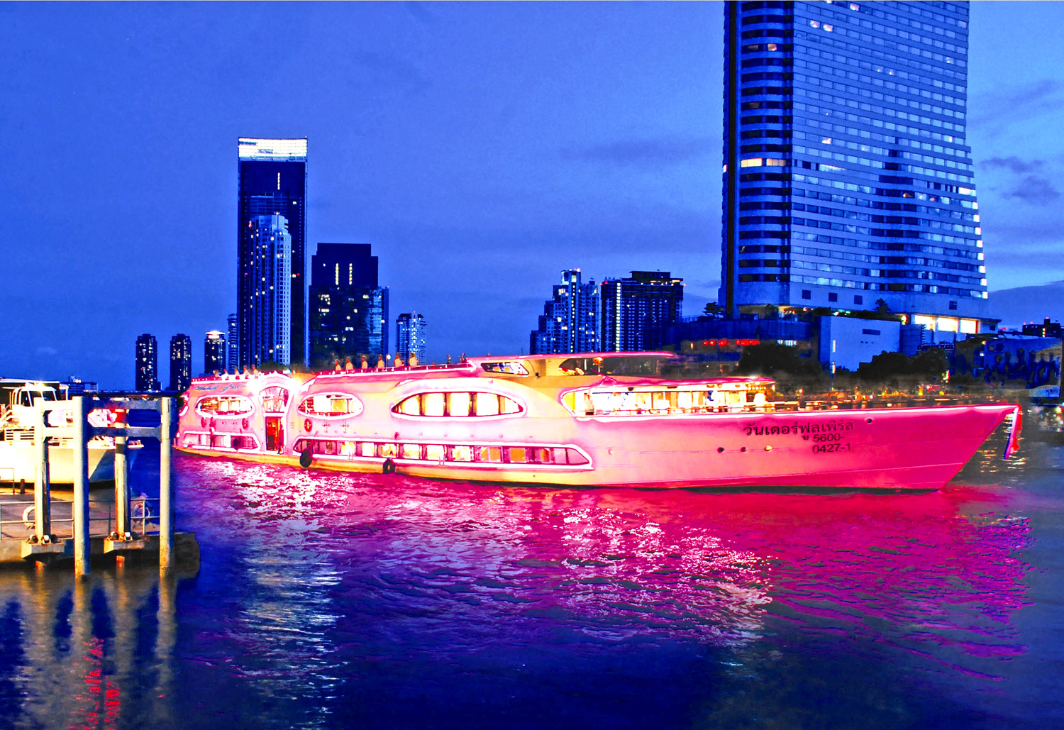Crociera in nave Wonderfull sul fiume Chao Phraya con Palazzo Reale e i fantasmagorici templi di Bangkok illuminati dalla luna e dalle mille luci della notte. A bordo intrattenimento con musica dal vivo e danze tradizionali thailandesi. Cena a base di cucina thai ed internazionale a buffet servita a bordo.