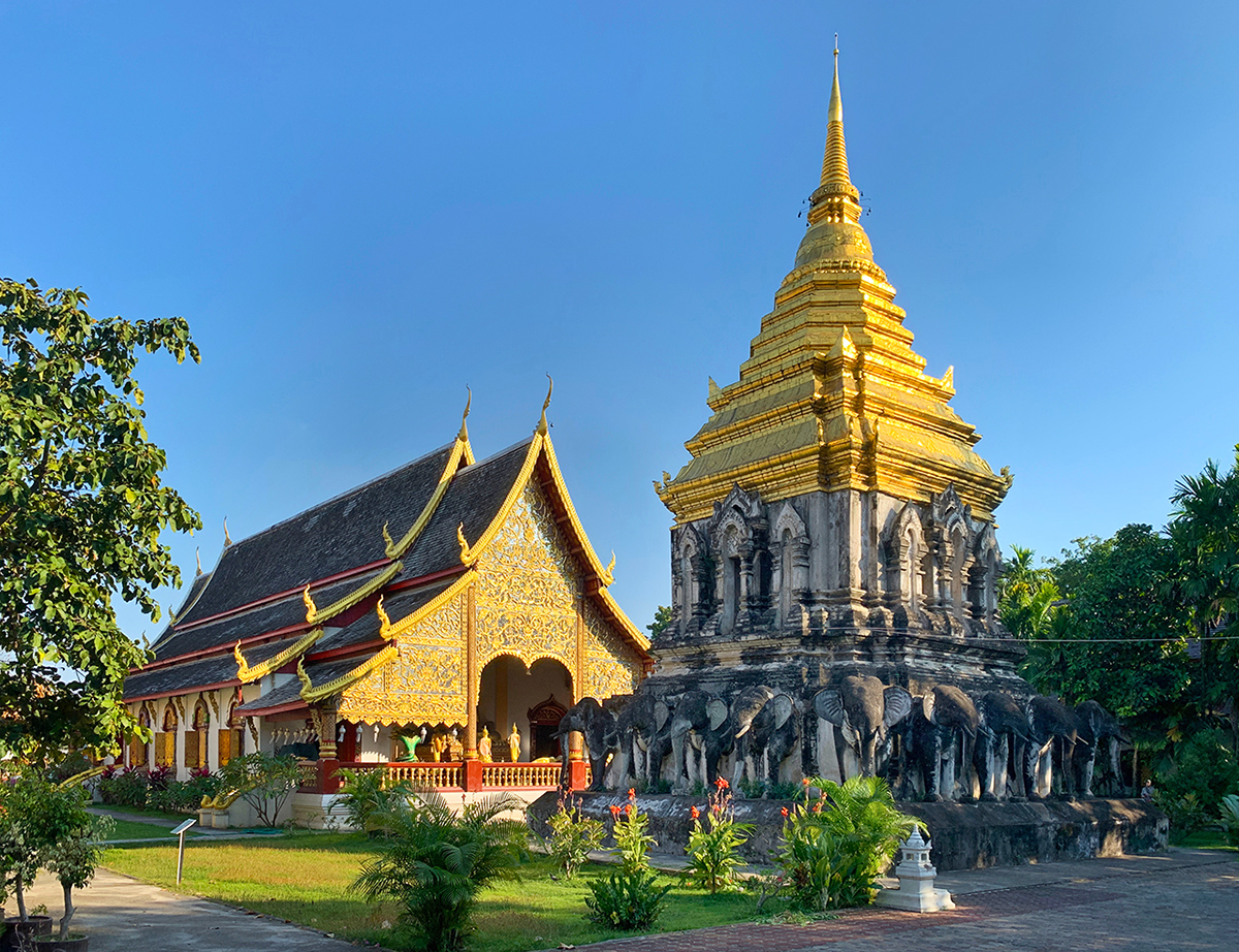 Entriamo tra le mura antiche della Città Vecchia di Chiang Mai per visitare i cinque templi più significativi: il Tempio Reale "Wat Suan Dok" in cui sono conservate le ceneri della famiglia reale di Chiang Mai; l’incantevole monastero reale “Wat Phra Singh” risalente al 1345 d.C. noto per la sua collezione di pregevoli sale e l’antica biblioteca; il magnifico “Wat Chedi Luang” col suo Stupa circondato da grandi elefanti mitologici; il maestoso "Wat Jed yod" tempio delle Sette Guglie; il “Wat Chiang Man” che ospita due armoniose immagini sacre del Buddha e il Chedi con teste di elefante in pietra.