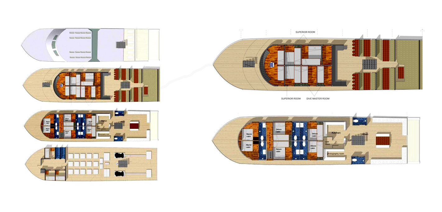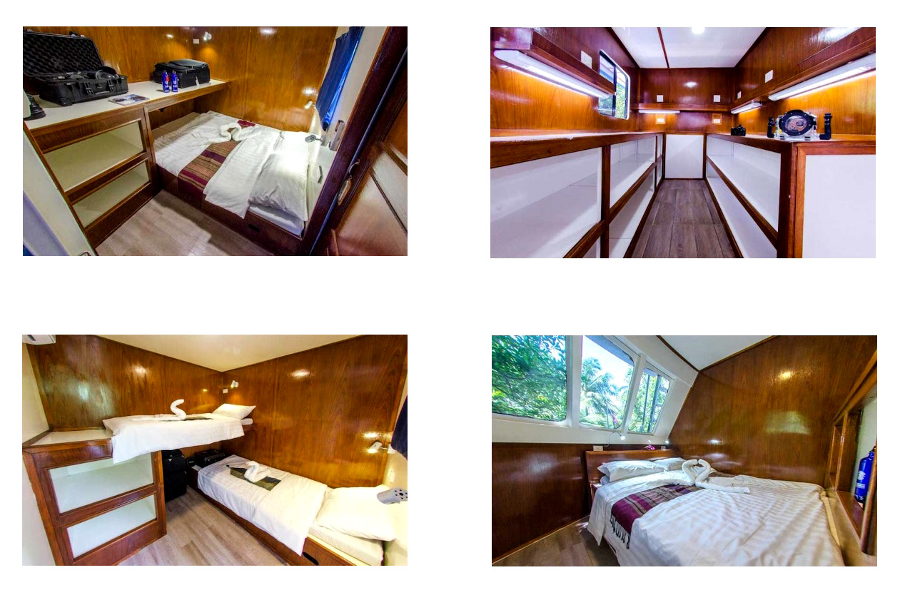 - Sono disponibili 8 sistemazioni in cabina doppia standard, deluxe e master (le standard con bagno comune, le altre con bagno privato) per un massimo di 16 partecipanti.