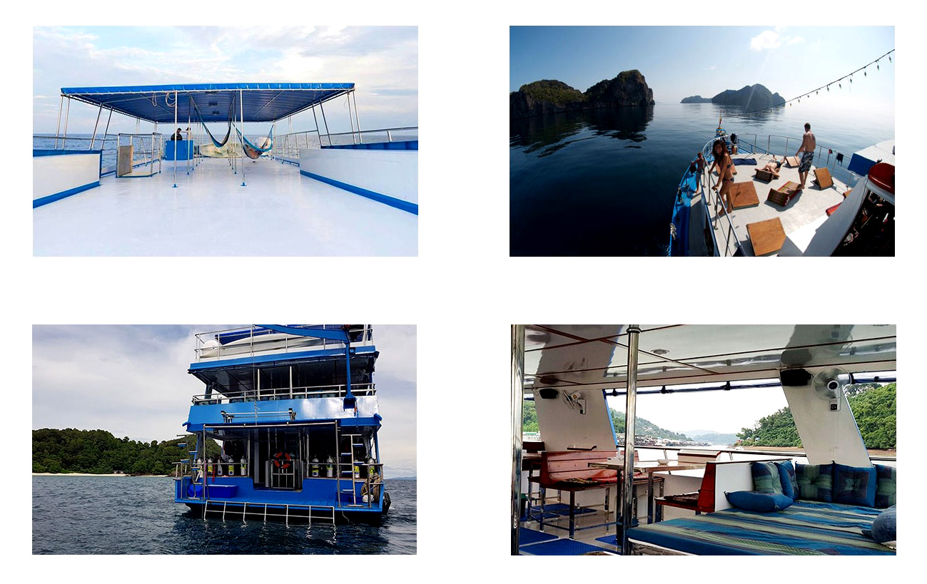 Faremo 4 immersioni giornaliere: 2 sedute al mattino, 1 al pomeriggio e 1 all’imbrunire, per un totale di 29 sedute. 4 Pasti principali al giorno serviti a buffet in un mix di cucina thai e internazionale. Stuzzichini, frutta fresca disponibili durante tutto l’arco del giorno. In programma una serata barbecue da passare tutti insieme anche col nostro equipaggio dove canteremo balleremo e ci divertiremo.