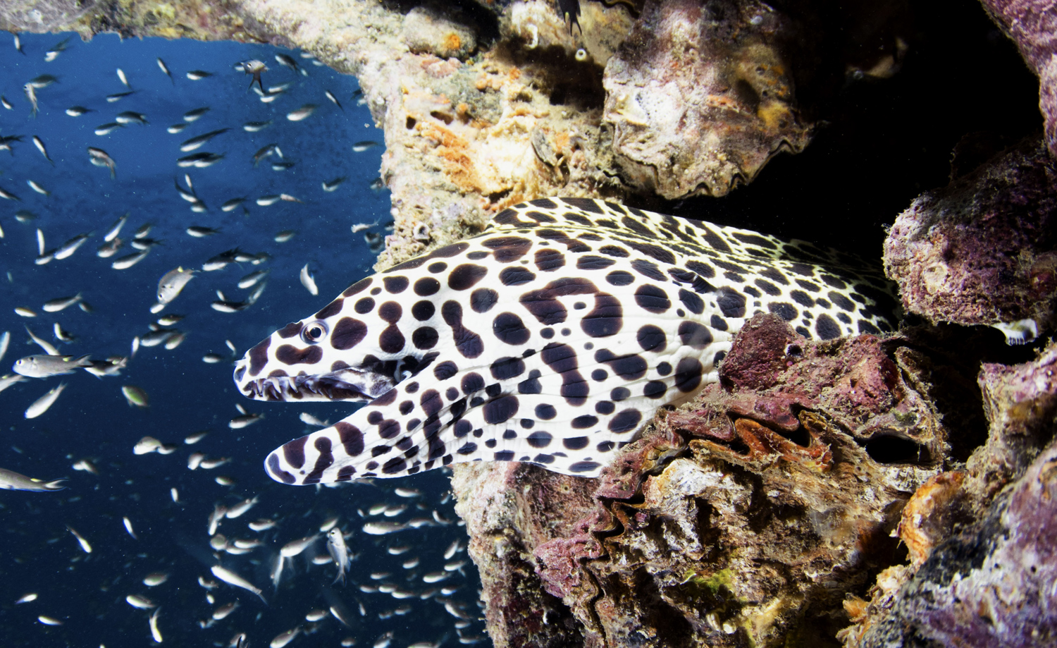 Dopo una notte in navigazione raggiungeremo Black Rock, una roccia in mare aperto abitata abitualmente da squali e dozzine di mante ma sono tanti i visitatori di passaggio che potremmo incontrare. Tantissimi i coralli duri e morbidi brulicanti di flora e fauna marina.