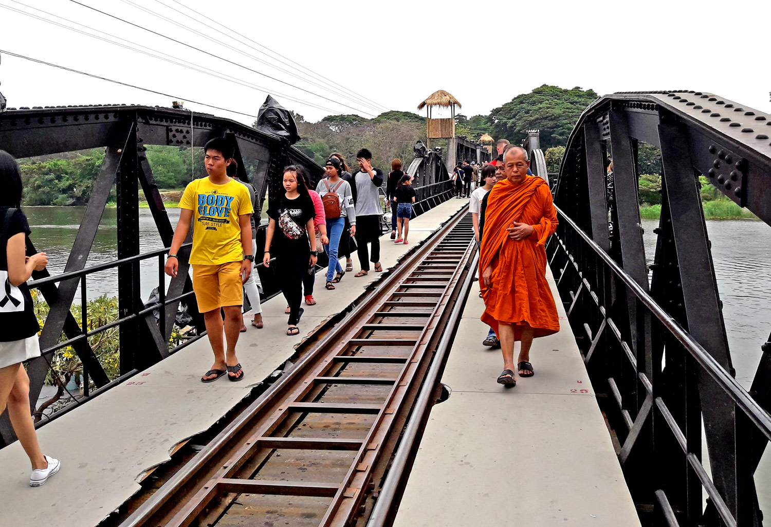 Oggi esploriamo la provincia di Kanchanaburi 145km (2 ore e 10”) a ovest di Bangkok, un mix di natura storia cultura. Arrivati a Kanchanaburi visitiamo il Museo della Guerra Jeath War e il Ponte sul Fiume Kwai da cui è stato tratto il famoso film vincitore di 3 premi oscar nel 1957 con attore protagonista William Holden. Dal ponte prendiamo il Treno che ci farà ripercorrere la "Ferrovia della Morte" che durante l’occupazione Giapponese costò la vita di circa 10.000 tra deportati e prigionieri di guerra Alleati. Scorreremo le vie di ferro scavate nella roccia sospese su ripidi strapiombi, immersi nella natura lussureggiante. Arrivati alla stazione di Tam Krasae, visiteremo la grotta con il Budda al suo interno dove si recavano i deportati thailandesi e birmani a pregare e poi scatteremo spettacolari fotografie sul fiume Kwai che si perde all’orizzonte tra paesaggi incantati. Pranzo in un ristorantino tipico a base di thai food. Sulla strada del ritorno a Bangkok, appena fuori Kanchanaburi visitiamo il meraviglioso complesso buddista Wat Tham Seua o Tempio della Tigre nella Grotta. Arrivo a Bangkok in hotel alle ore 17.30 circa.